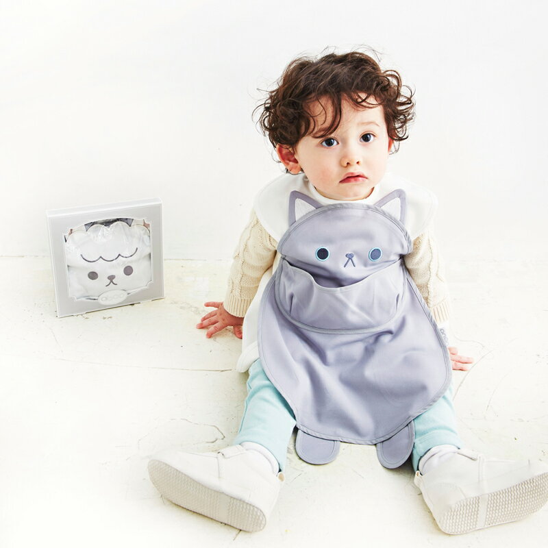 ・おひざがかくれる長い丈 ・お食事中にお顔が横を向いても肩がよごれない、肩回りをカバーするデザイン ・ちくちくしないマジックテープでワンタッチ着脱 ・ロングタイプのマジックテープでサイズ調整可能 ・裏地撥水素材のコーティングで液体を通しません ・立体ポケットで食べこぼしや汁物もキャッチします。