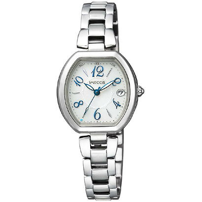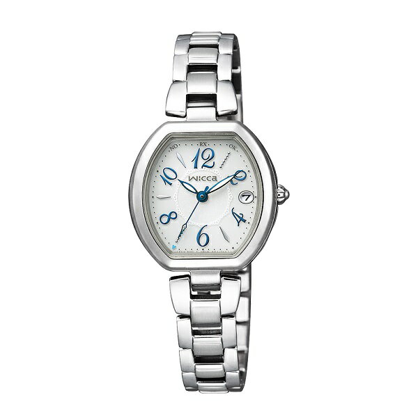 <シチズン腕時計 ウィッカ ソーラー電波時計HAPPY DIARY トノー> ウィッカ ソーラーテック電波時計 HAPPY DIARY トノー ・くるんとカールした数字と爽やかなブルーのさし色が印象的なトノーモデル。