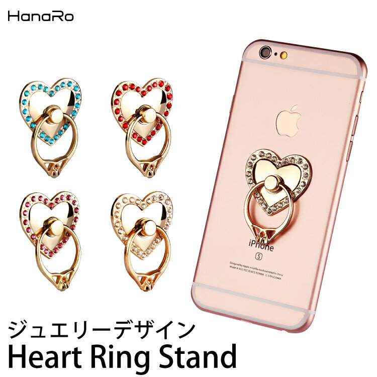 スマホリング リングホルダー ホールドリング スマホスタンド ハート型 ビジュー 落下防止 指輪型 スマートフォン タブレット 携帯 ケイタイ アクセサリー ガーリー 可愛い キラキラ 小物 雑貨