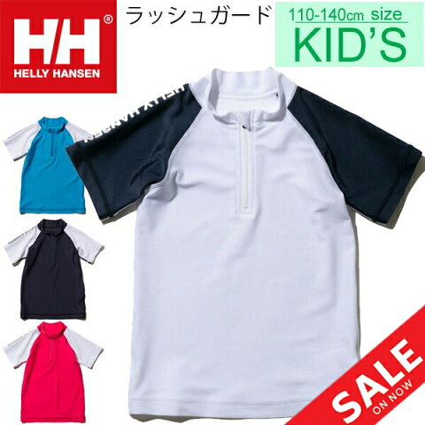 ラッシュガード 半袖 キッズ 子供用 ヘリーハンセン HELLY HANSEN ショートスリーブ ハーフジップ 水着 子ども 男の子 女の子 プール 海水浴 レジャー キャンプ/HJ81903【返品不可】
