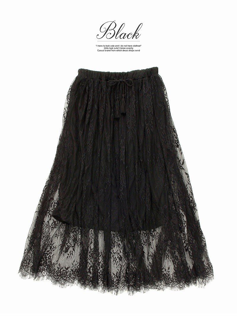 透け感がエアリーなフレアスカートは花柄レースで上品にフェミニンな印象に♪